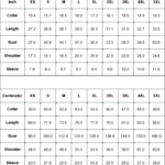 | Inch | XS | S | M | L | XL | 2XL | 3XL | 4XL | 5XL |