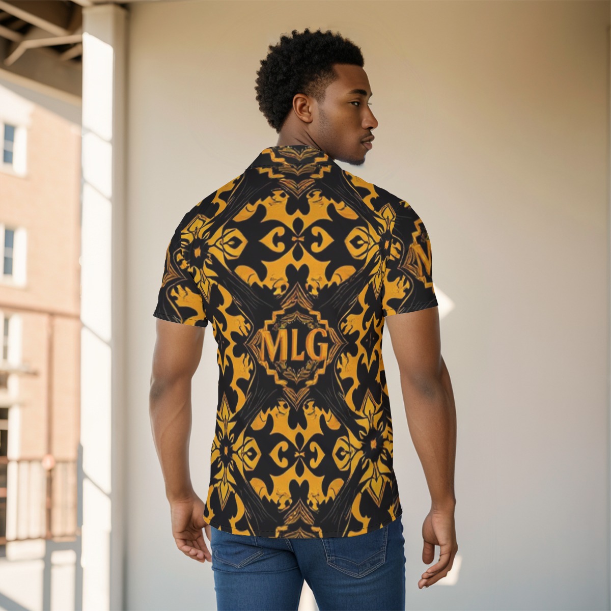 • All-over graphic print that delivers clean, upscale energy