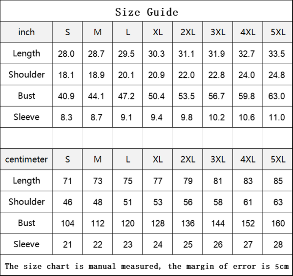 The size chart is manual measured, the margin of error is 5cm