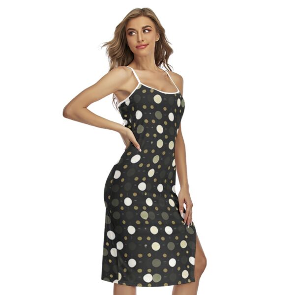 Turn heads in this sleek, body-hugging cami dress designed to accentuate your silhouette. Featuring delicate spaghetti straps that cross elegantly in the back and a side slit for a touch of allure, this piece blends sophistication and confidence in every step. Crafted from soft, stretchy jersey fabric for a smooth, second-skin feel.