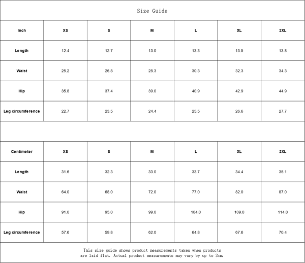 This size guide shows product measurements taken when products are laid flat. Actual product measurements may vary by up to 3cm.