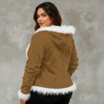Women’s Faux Fur Trim Hooded Jacket – Soft Velvet Shine & Winter Glam