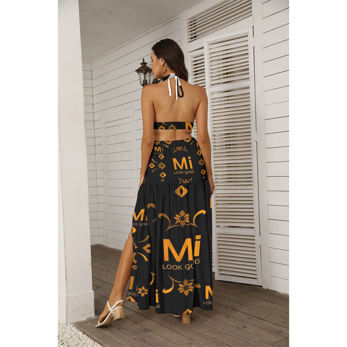 The Lustra Set is made to captivate. This two-piece look pairs a backless halter top with a side-slit skirt for a silhouette that highlights your curves and elongates your legs. Whether you’re headed to the beach, rooftop, or resort — this set is the moment.
