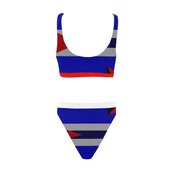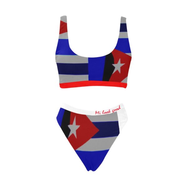 • High-waisted bottoms & tank-style top for flattering coverage and support