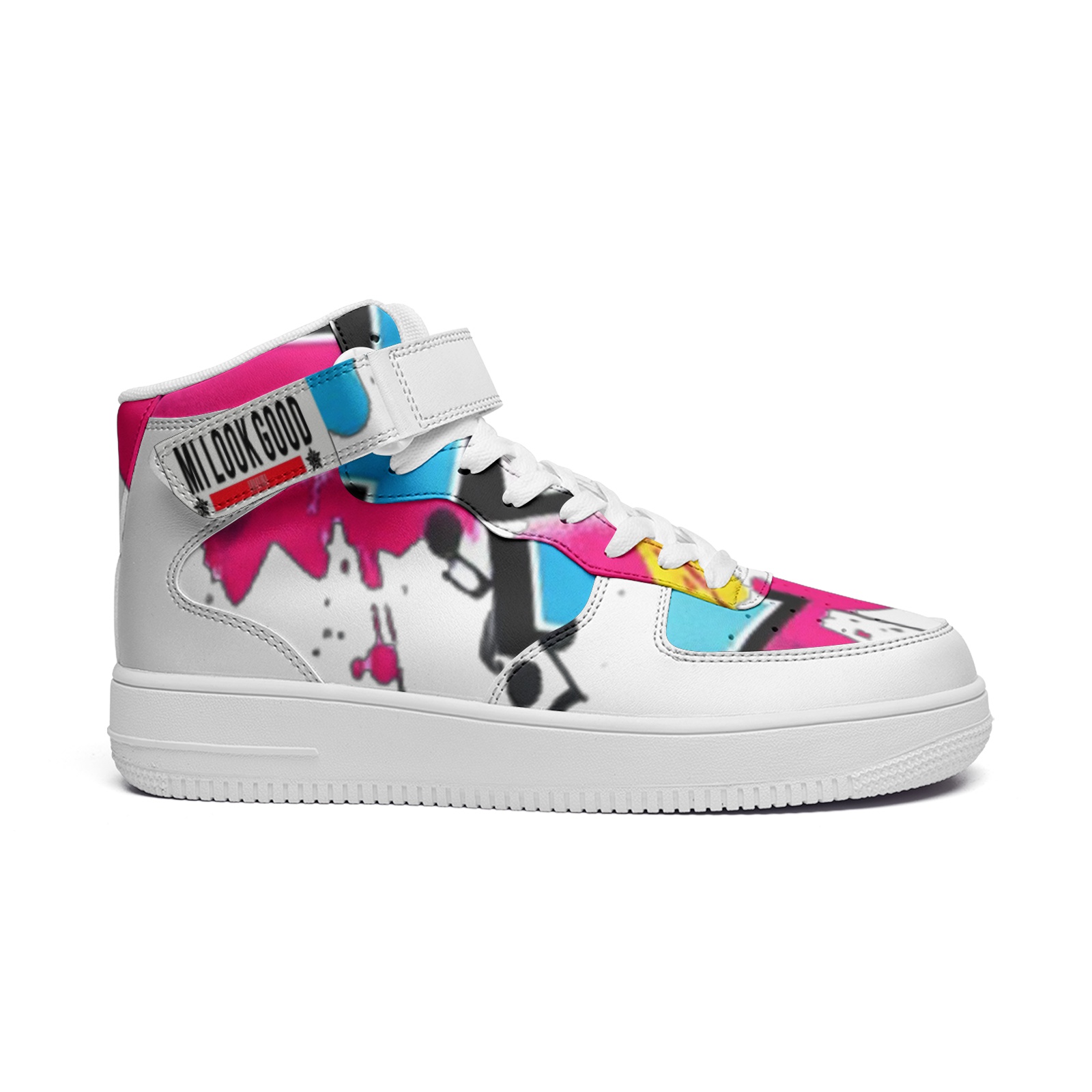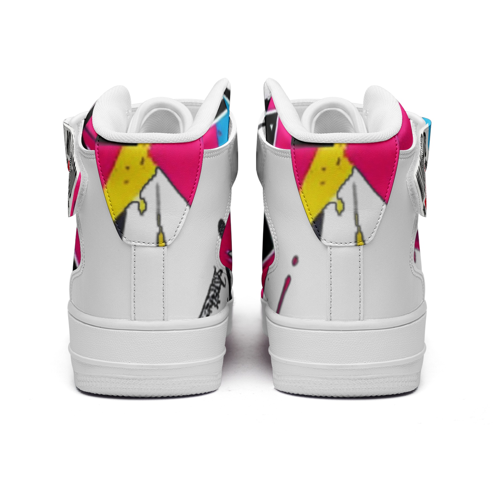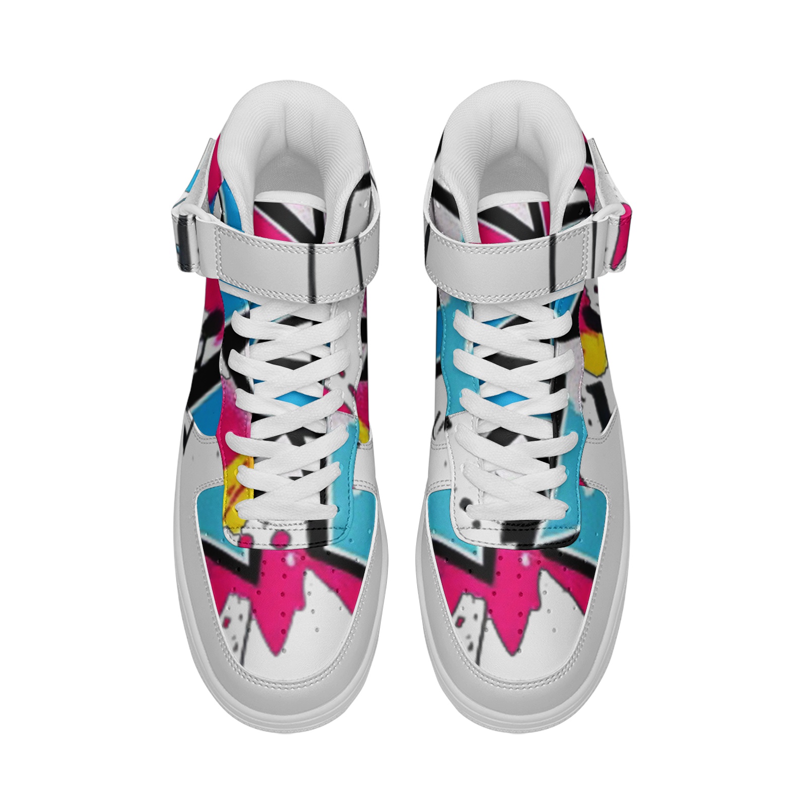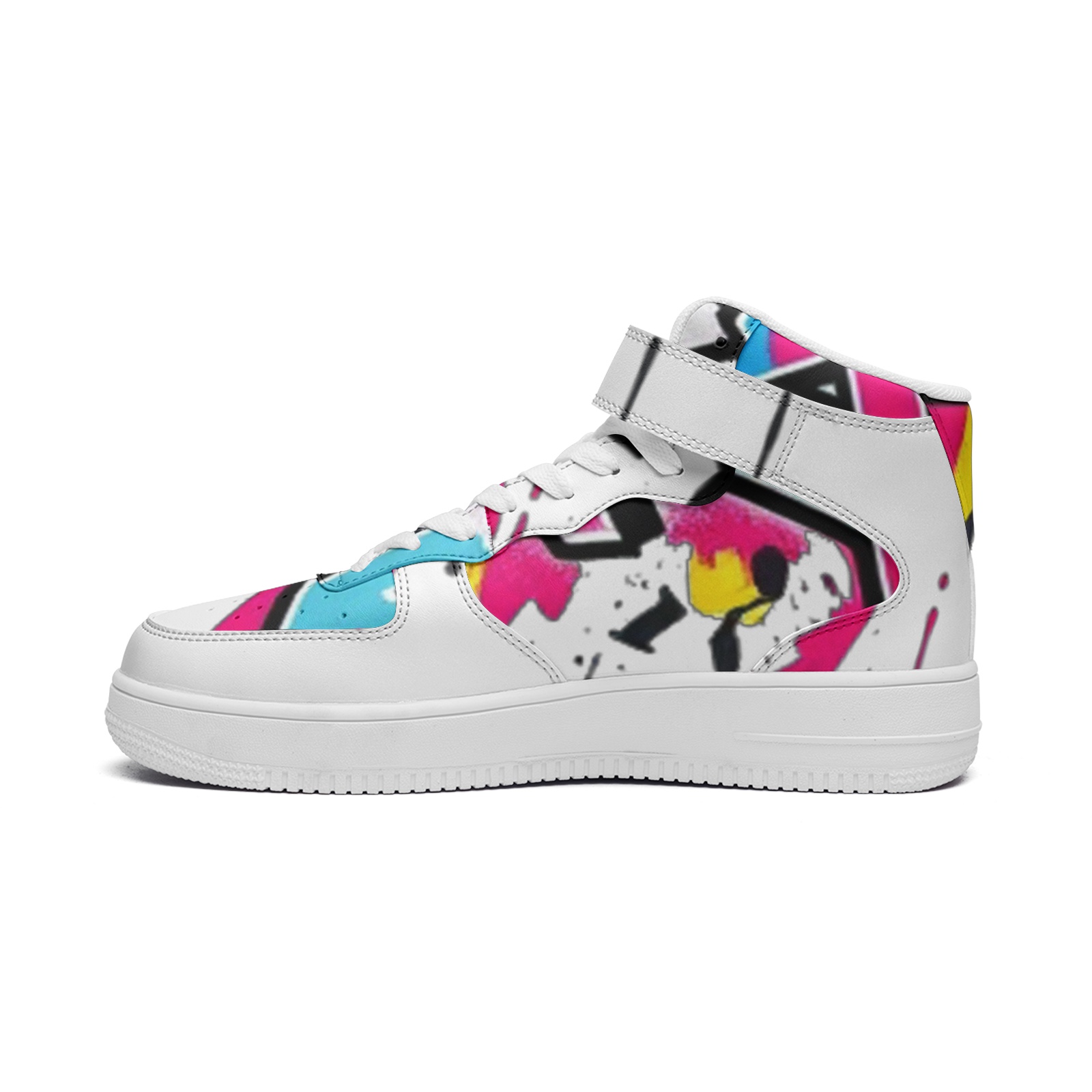 Mini Description: White leather meets wild expression in this graffiti-dripped masterpiece. With light blue tones and vibrant street-art splashes across a crisp base, Eyes Cream turns chaos into clean style. Designed for all-day chill and heat with breathable zones, perforated toe box, and custom traction for grip that doesn’t quit.