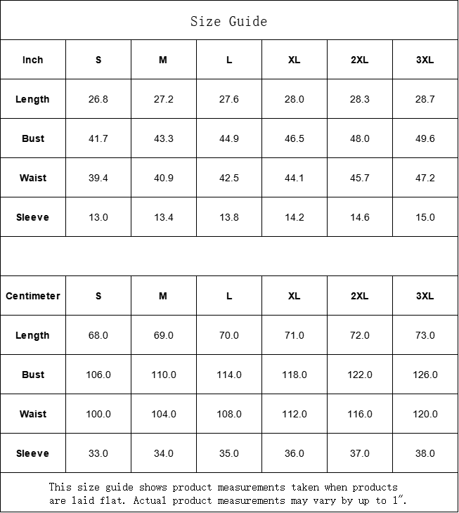 This size guide shows product measurements taken when products are laid flat. Actual product measurements may vary by up to 1″.