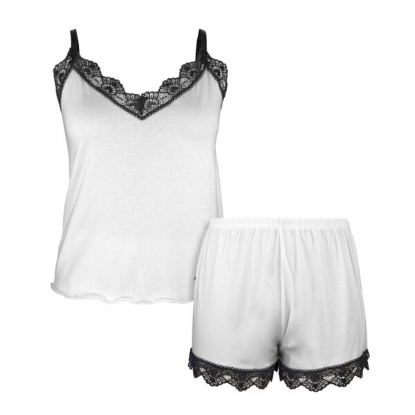 • Black lace trim adds a touch of sophistication