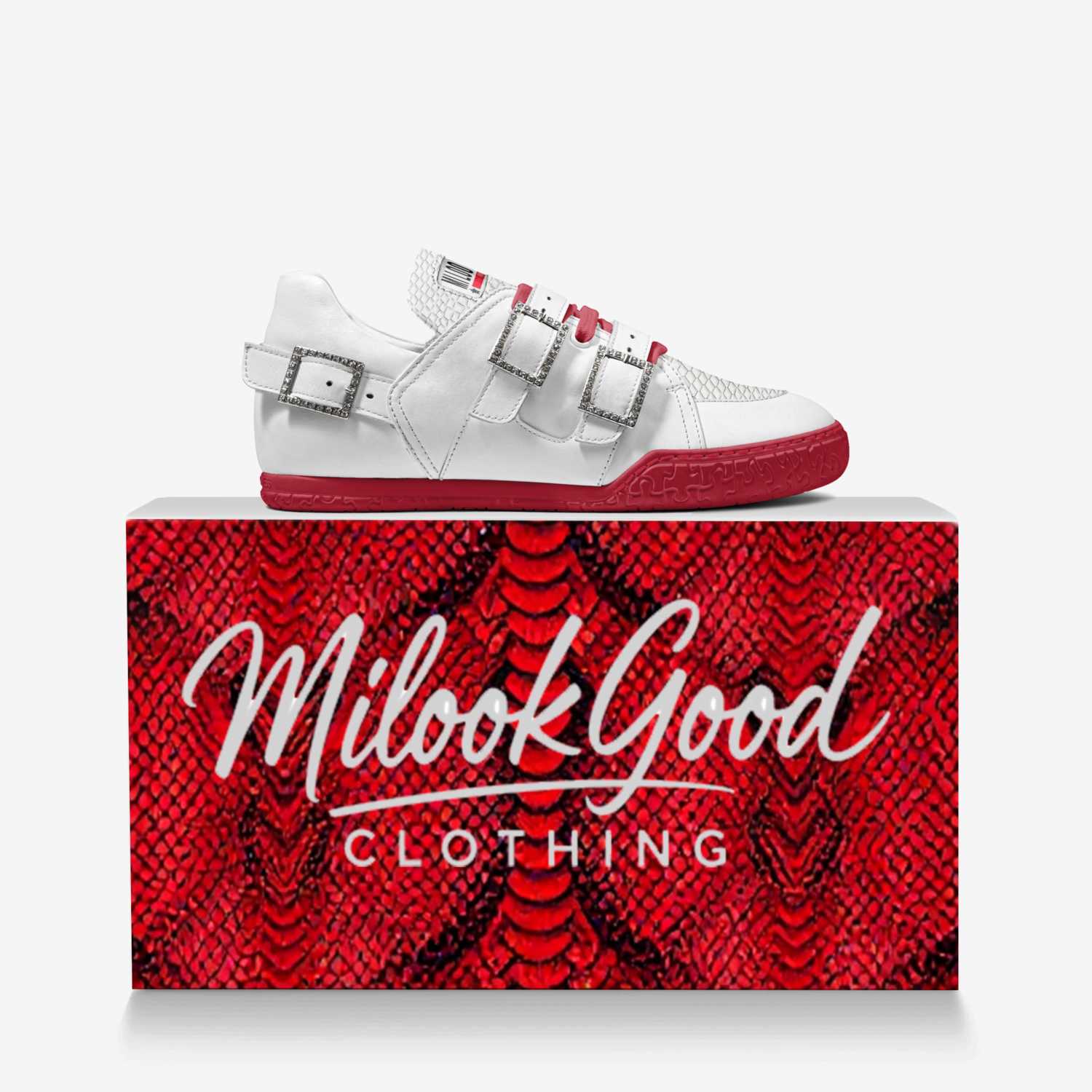 🐍 Premium white Italian leather base paired with white python print accents