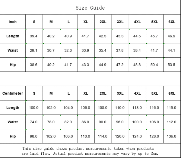 Centimeter S M L XL 2XL 3XL 4XL 5XL 6XL