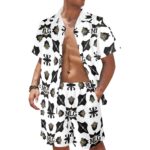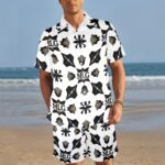 The Ocean Ease Summer Set combines effortless style with performance fabrics perfect for beach days or casual outings. Made from a lightweight, quick-drying four-way stretch blend of 94% polyester and 6% spandex, this set keeps you comfortable wherever your day takes you. The classic V-neck shirt features a button front and a handy chest pocket, while the matching beach shorts offer a relaxed fit with durable fabric and an adjustable white drawstring waistband.