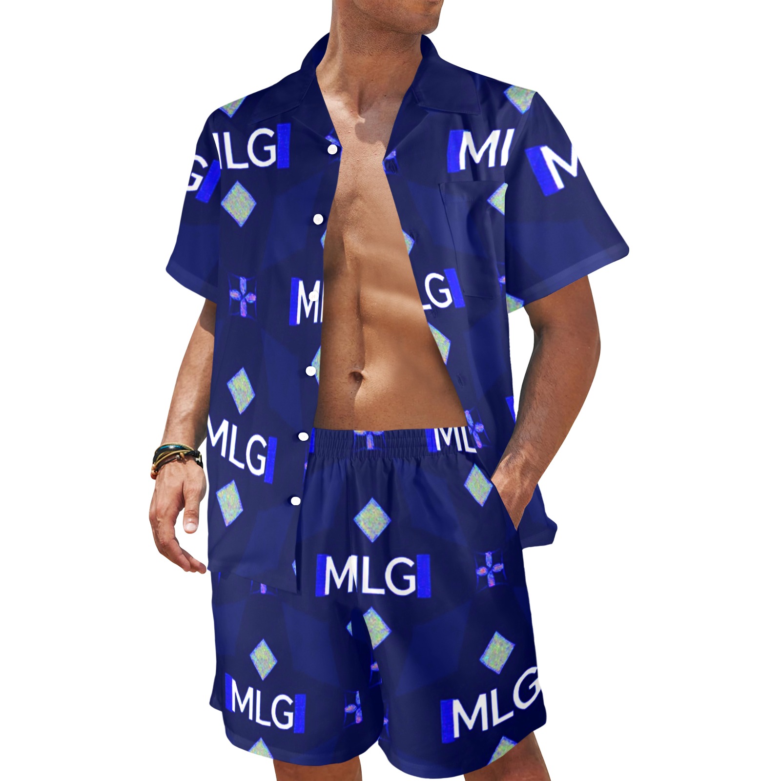 The Ocean Ease Summer Set combines effortless style with performance fabrics perfect for beach days or casual outings. Made from a lightweight, quick-drying four-way stretch blend of 94% polyester and 6% spandex, this set keeps you comfortable wherever your day takes you. The classic V-neck shirt features a button front and a handy chest pocket, while the matching beach shorts offer a relaxed fit with durable fabric and an adjustable white drawstring waistband.