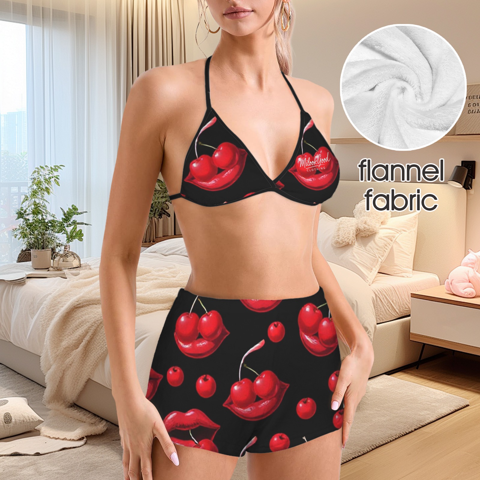 Moon Lounge Flannel Bikini Pajama Set – Soft, Flirty, Effortlessly Relaxed