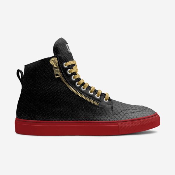 Rugged. Refined. Rebellious. URBAN CRUST is a bold reimagination of the basketball high-top — elevated with luxurious python print black leather and edgy detailing. This statement sneaker merges athletic roots with high-fashion edge, delivering both street grit and upscale flavor.