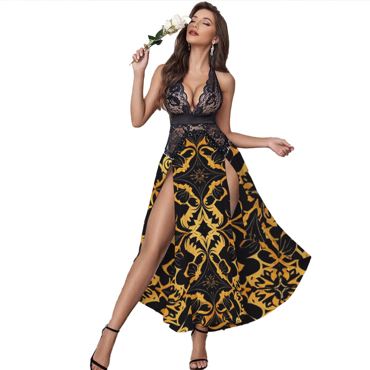 Step into sophistication with our Women’s Elegant Mesh Lace Evening Dress — a timeless piece designed to captivate every room you enter. Crafted from lightweight, breathable mesh blended with stretch fabric, this gown offers both comfort and elegance. The lace-trimmed bodice features a plunging neckline that enhances your natural grace, while the open-back design with tie closure adds a hint of allure. The high side slits and flowing skirt create a graceful silhouette that moves effortlessly, perfect for galas, weddings, or any evening occasion where you want to make a lasting impression.
