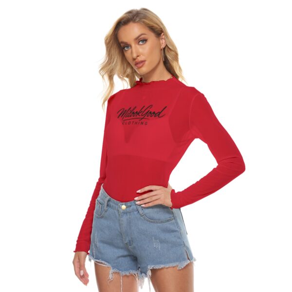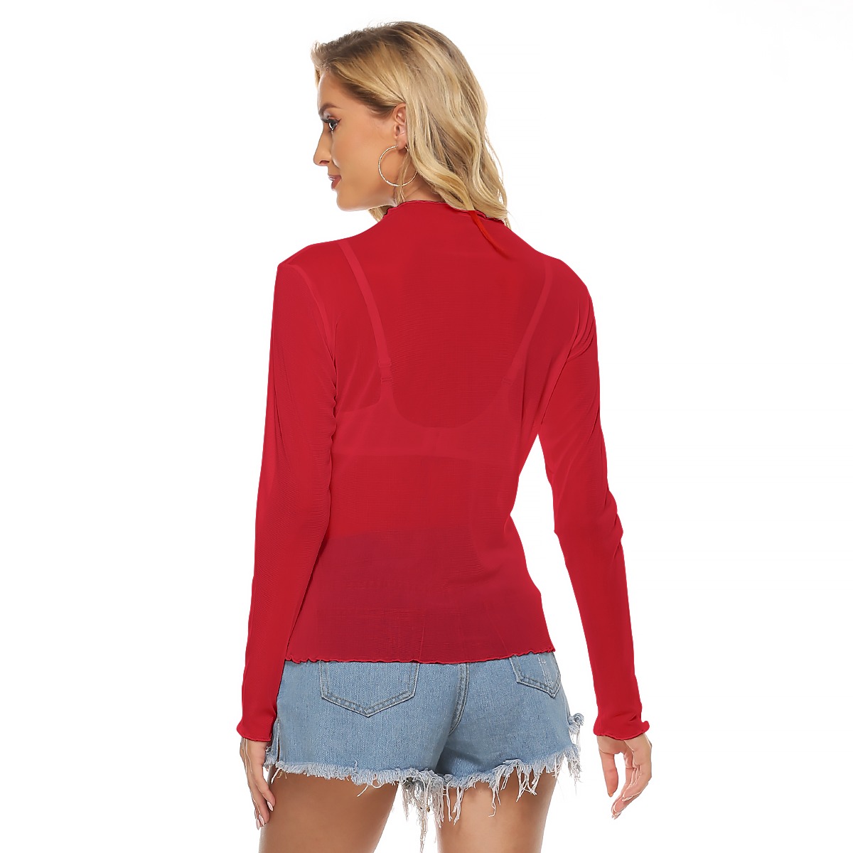 Light, breathable, and effortlessly sexy, this mesh T-shirt is designed to elevate your everyday style. The sheer mesh fabric keeps you cool while adding a bold, confident edge, and the unique neckline and cuff tailoring create a flattering, eye-catching silhouette. Perfect for layering or wearing on its own, this piece transitions easily from day to night.