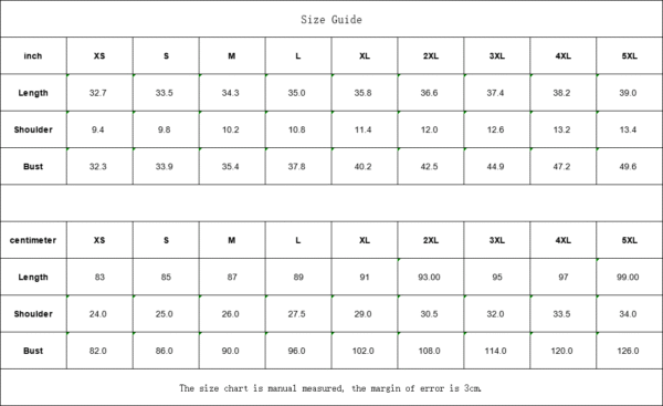 inch XS S M L XL 2XL 3XL 4XL 5XL